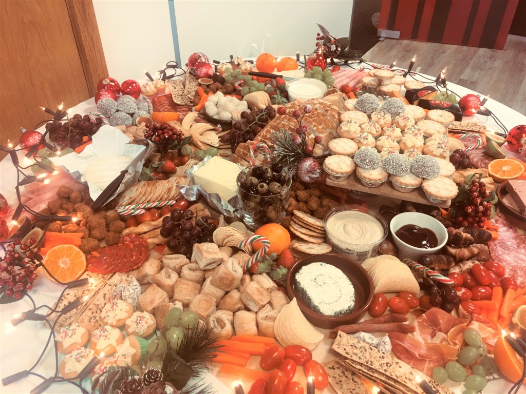 How about an office party grazing table? This was one prepared for a local company at Christmas. The lights and decorations make it really festive.